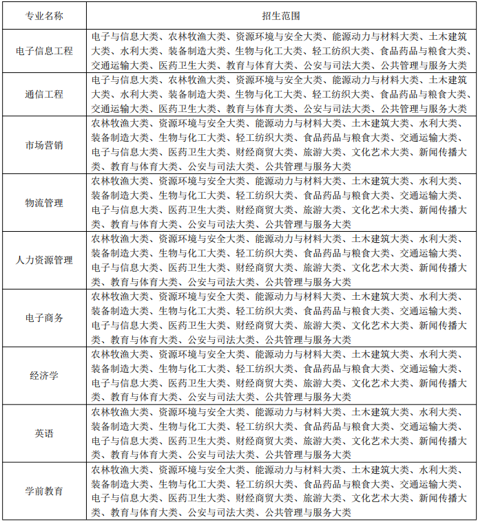 1.2招生专业范围