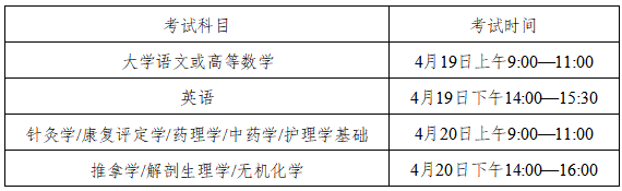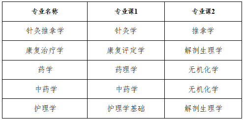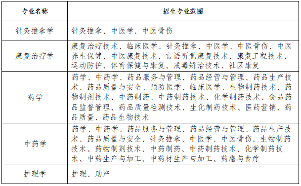 (2)针灸推拿学专业学制为3年,康复治疗学、药学、中药学、护理学专业学制为2年;