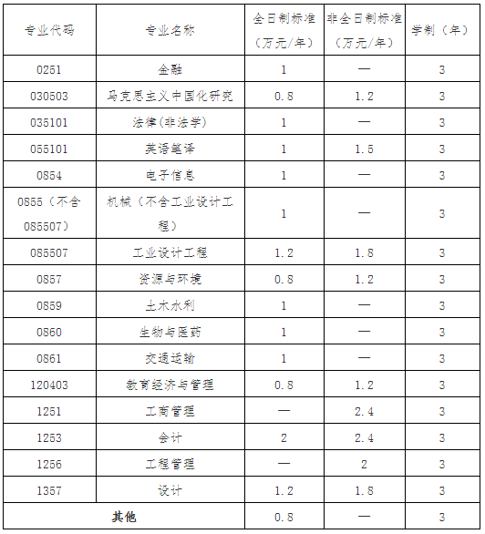 全日制研究生:学习方式为全脱产,非全日制研究生:学习方式为全脱产或半脱产。收费标准见下表。